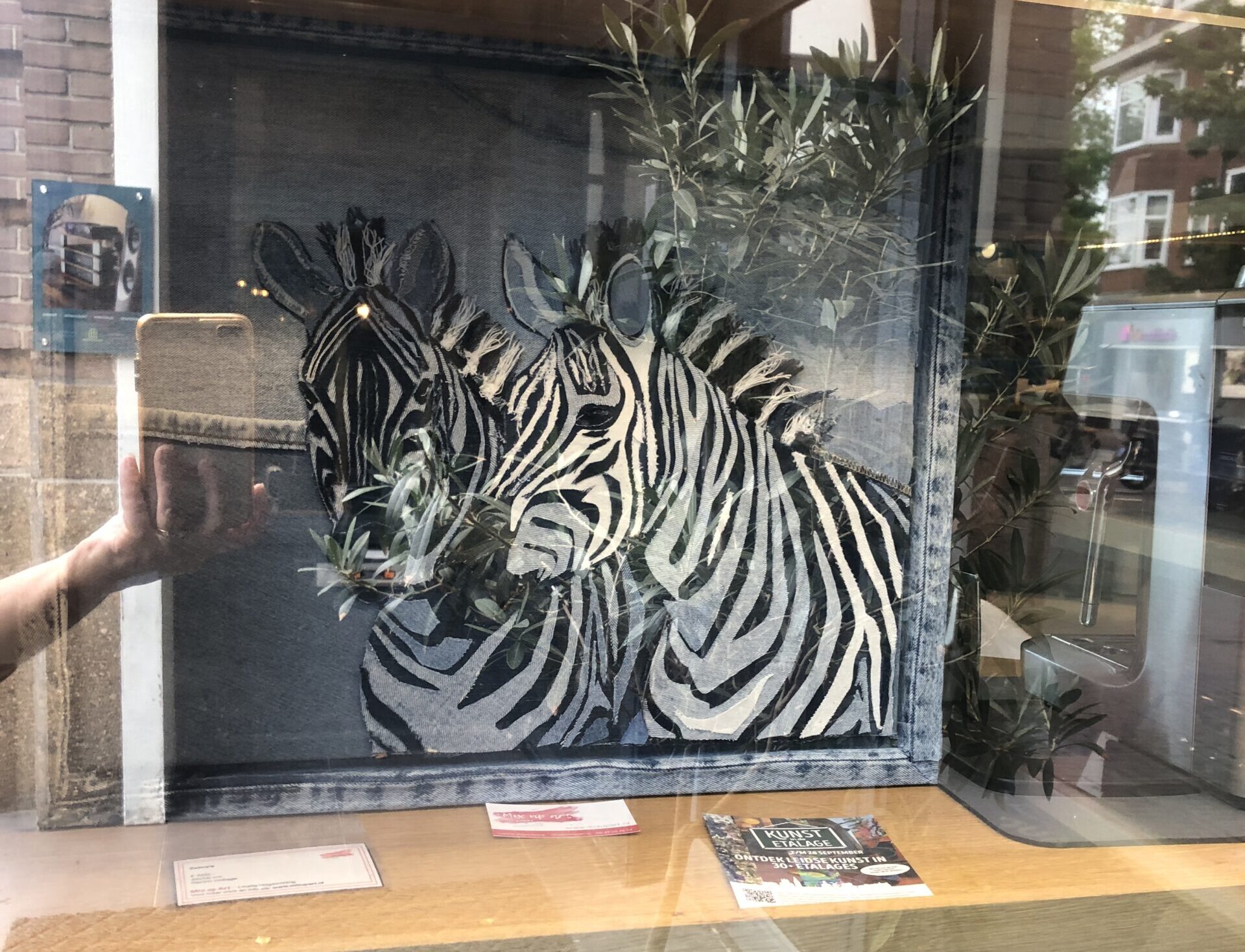 Voorafgaand aan de atelierroute organiseert Stichting Kunst uit Hillegom 'kunst in de etalages' van 24 september tot en met 7 november. Twee van mijn denimcollages zijn te vinden bij Vestito Damesmode op de hoofdstraat